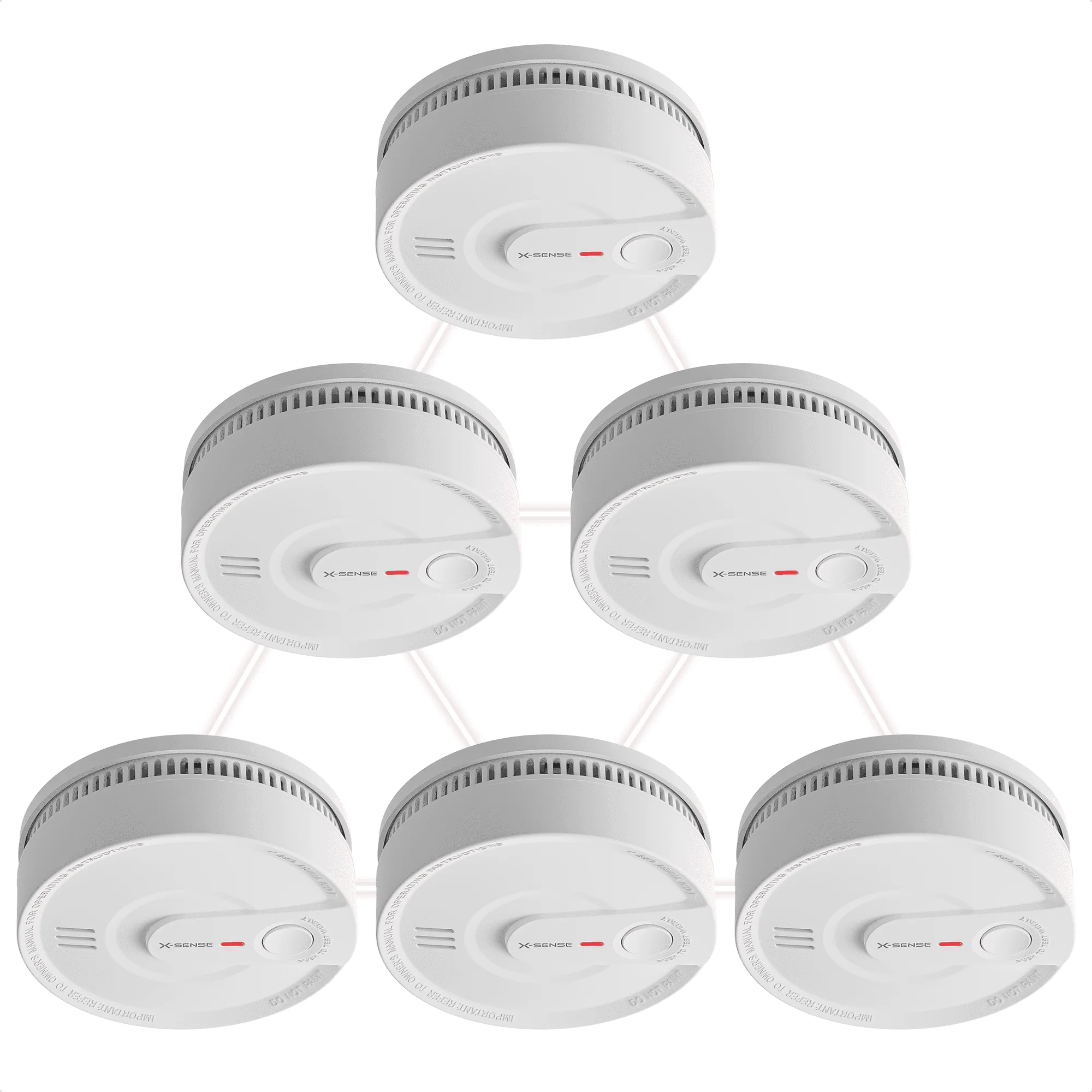 The X-Sense SD20-W Smoke Detector provides 10 years of reliable protection with its built-in lithium battery, requiring no replacement during its lifespan. This wireless interconnected alarm system supports up to 24 X-Sense Link+ devices, allowing you to create a comprehensive safety network across your home. The pack of 6 pre-connected smoke detectors offers flexible networking options, letting you add or remove devices as needed. Made from flame-retardant, high-temperature resistant ABS material, these detectors ensure durability. When one alarm is triggered, all units emit an 85 dB sound, alerting everyone in the house, even heavy sleepers. Stay safe and connected with the X-Sense SD20-W.